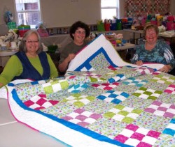 Thus began the tradition of members making a quilt each spring for a raffle with the funds all going to the scholarship fund. In recent years we have started to also have a dinner in the fall with all proceeds going to the scholarship fund and we have been happy to welcome current recipients as workers and guests at the dinners.